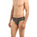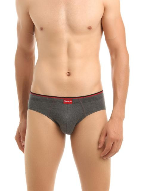 Charcoal grey rex stylz brief that has a mid rise modern square cut, stylish faux garter look, double layered contoured pouch for extra room, wide waistband with red and black tipping that provides super soft, smooth and comfortable grip with printed branding for abrasion free comfort