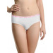 White bikini style briefs with brand print elasticated waistband and brand print in front and lace detailing at the back