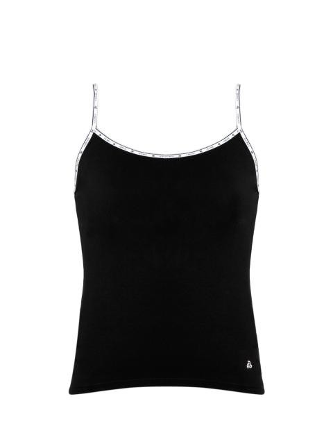 Black camisole that has fashionable ultra soft, adjustable straps that rest comfortably on your shoulders and leaves no marks on your skin. The trendy logo straps makes a style statement of its own