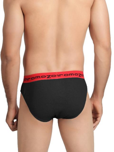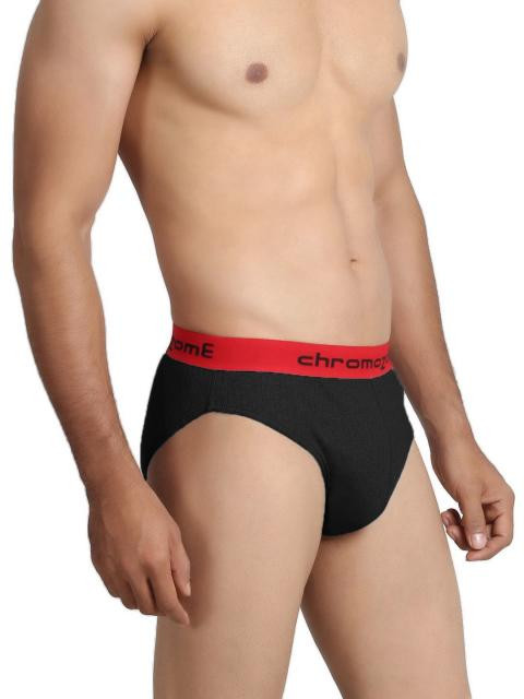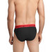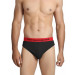 Black briefs with elasticated waistband that has contrast coloured branding, double layered front pouch, elasticated leg holes, full back coverage
