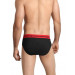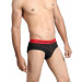 Black brief, wide red elasticized waistband with branding for a smooth and comfortable grip, double layered front with red flatlock for extra support and comfort, high cut design allows free leg movement, printed branding on the inside offers abrasion-free comfort