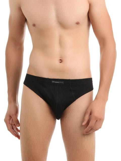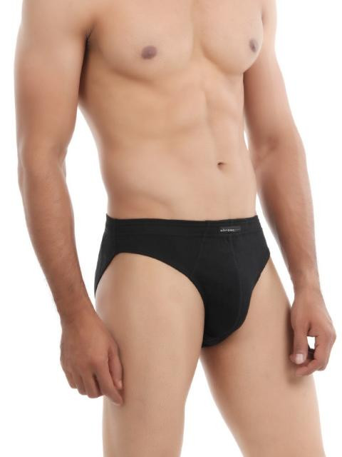 Pack of two black briefs that have a broad, elasticated waistband, stitch detailing,