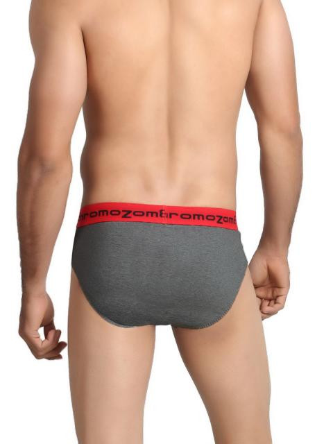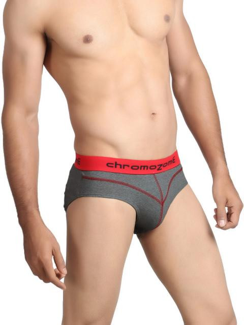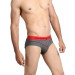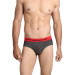 Charcoal Melange brief, wide red elasticized waistband with branding for a smooth and comfortable grip, double layered front with red flatlock for extra support and comfort, high cut design allows free leg movement, printed branding on the inside offers abrasion-free comfort