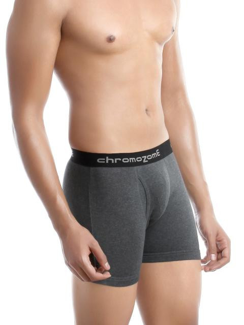 Charcoal grey college trunks that have a broad, elasticated waistband, stitch detailing, printed branding on the waistband and slightly elasticated at the legs for enhanced comfort
