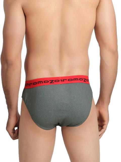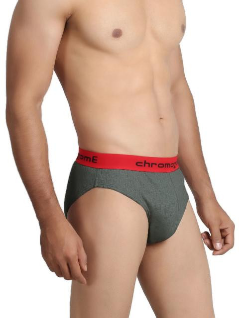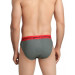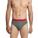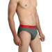 Grey briefs with elasticated waistband that has contrast coloured branding, double layered front pouch, elasticated leg holes, full back coverage
