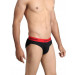 Black brief, pack of two, wide red elasticized waistband with branding for a smooth and comfortable grip, double layered front for extra support and comfort, high cut design allows free leg movement, printed branding on the inside offers abrasion-free comfort