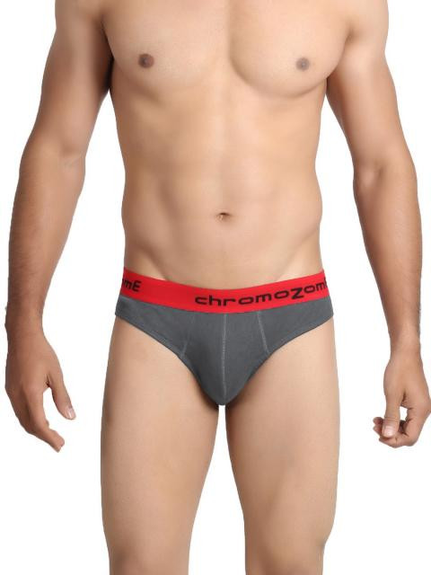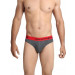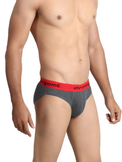 Charcoal melange brief, pack of two, wide red elasticized waistband with branding for a smooth and comfortable grip, double layered front for extra support and comfort, high cut design allows free leg movement, printed branding on the inside offers abrasion-free comfort