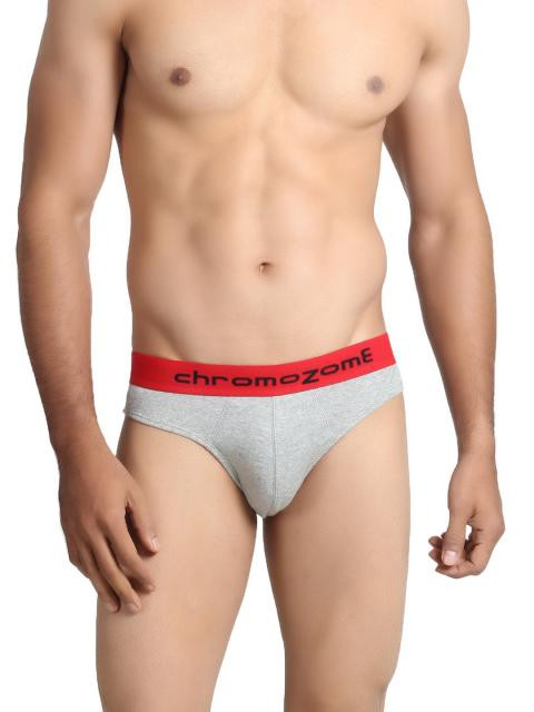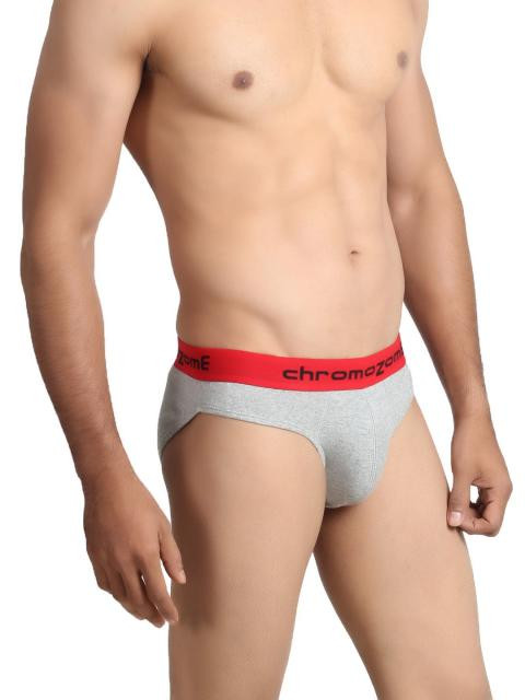 Grey melange brief, pack of two, wide red elasticized waistband with branding for a smooth and comfortable grip, double layered front for extra support and comfort, high cut design allows free leg movement, printed branding on the inside offers abrasion-free comfort