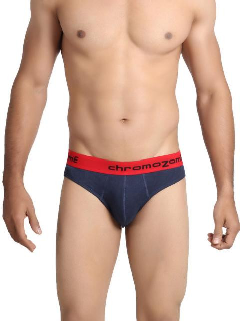 Cut from soft and stretchy knit cotton fabric, this fashion brief from chromozome epitomises style and comfort. Its elasticated wide waistband offers a snug Fit while printed branding on the inside provides tag-less comfort. Available to you at a price that does not burn a hole in your pocket this piece makes for a great buy.