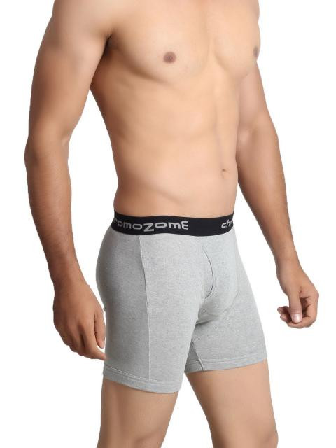 Cut from soft and stretchy knit cotton fabric, this pair of fashion trunks from chromozome epitomises style and comfort. Its elasticated wide waistband offers a snug Fit while printed branding on the inside provides tag-less comfort. Available to you at a price that does not burn a hole in your pocket this piece makes for a great buy.