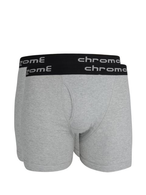 Grey melange trunks, pack of two, wide elasticized waistband with branding for a smooth and comfortable grip, keyhole fly in front, printed branding on the inside offers abrasion-free comfort