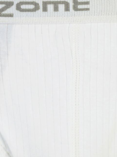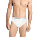 White briefs with elasticated waistband that has branding, double layered front pouch, elasticated leg holes, full back coverage
