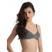Black striped brassiere which is of a moulded non wired variety for better comfort and soft feel against the skin, has adjustable straps, a single hook and eye clasp which is adjustable to Fit your body type at the back and double layered and seamless cups to give a smooth look under tight fitting garments