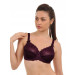 Purple under-wired brassiere with embroidered lace and bow detail on the straps, fully lined