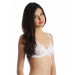 White net brassiere, has soft cups, lace panel over the cups to form a double layer, adjustable straps and double adjustable hook and eye clasp at the back