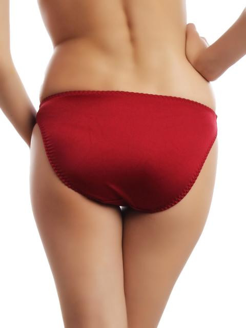 Red briefs, lace front panel, elasticized waist with bow in front, soft fabric panel inlay at crotch, stretchable