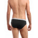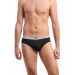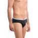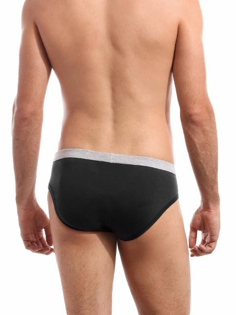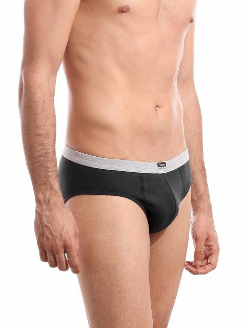 Black hip brief made from superior cotton elastane fabric that is designed to absorb moisture from the skin and release it outside and enables easy stretch movement, engineered with duo-dry management technology to keep you cool and dry, has ComfortSoft waistband for a snug Fit and is tagless with a printed inner