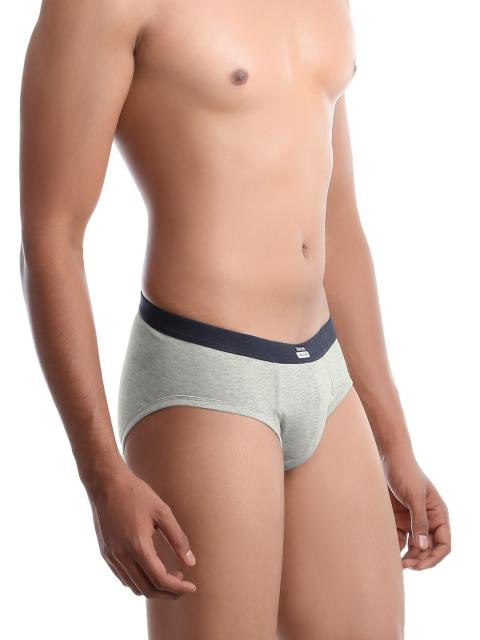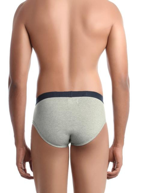 Light grey hip brief made from superior cotton elastane fabric that is designed to absorb moisture from the skin and release it outside and enables easy stretch movement, engineered with duo-dry management technology to keep you cool and dry, has ComfortSoft waistband for a snug Fit and is tagless
