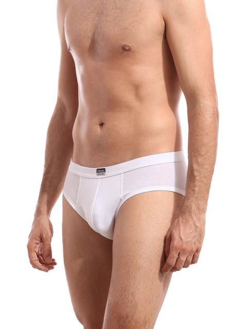 White hip brief made from superior cotton elastane fabric that is designed to absorb moisture from the skin and release it outside and enables easy stretch movement, engineered with duo-dry management technology to keep you cool and dry, has ComfortSoft waistband for a snug Fit and is tagless