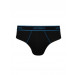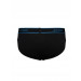 Black bikini briefs made of combed cotton and elastane, with a double-layered front pouch, medium high leg and soft waistband with branding