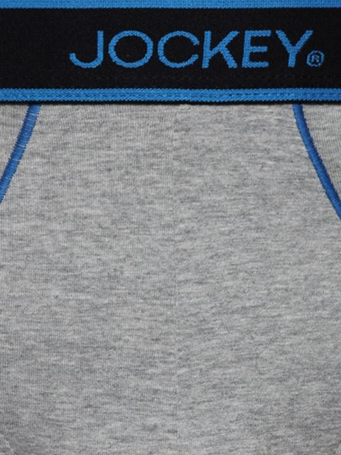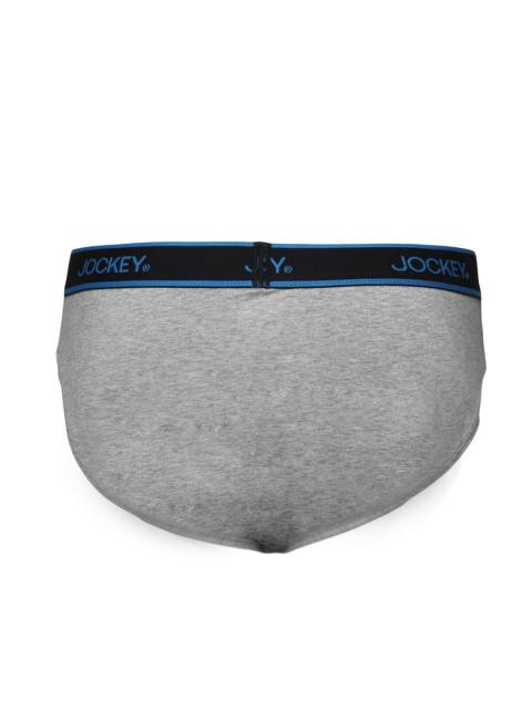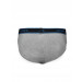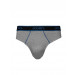 Grey bikini briefs with a double-layered front pouch, medium high leg and soft waistband with branding