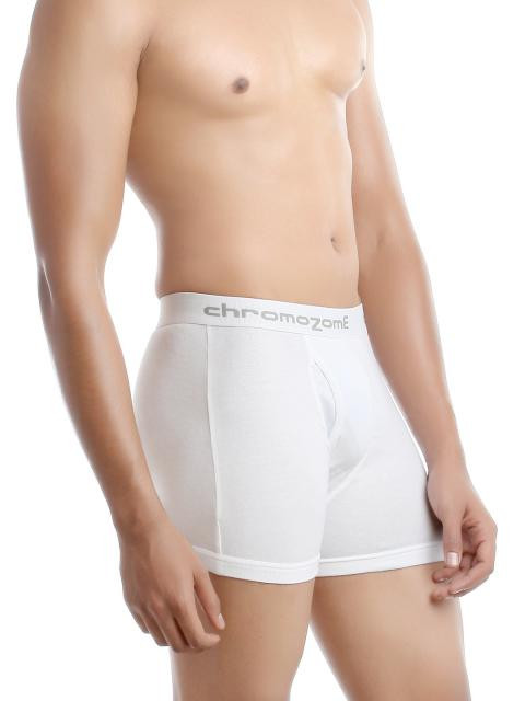 White college trunks that have a broad, elasticated waistband, stitch detailing, printed branding on the waistband and slightly elasticated at the legs for enhanced comfort
