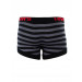 Black and grey striped boxer brief made of 100% combed cotton, has the signature logo on the contrast waistband, shaped-to-Fit double layered contoured pouch and printed label on the inner