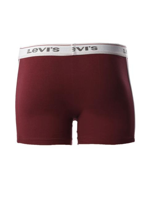 Boxer briefs from Levi's in burgandy and grey, made of 95% combed cotton and 5% elastane for comfort, softness and stretch. Levi's name written on waistband and 'Levi Strauss & co' written across back. Slim white, green and red piping decorating side seams on front and back