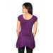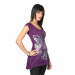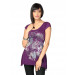 Purple long top made of 100% viscose, with a falling neckline and back, short sleeves, asymmetrical hemline and metallic print on the chest with a hint of metal colours
