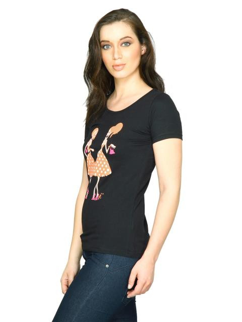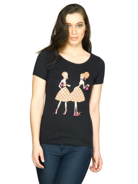 Don the boho chic look in a really cool way with this trendy black t-shirt from jealous 21. The graphic print of party girls adds to it a fashionable edge, while the cotton fabric keeps you fresh and comfortable all day. Pair it with denims and heeled sandals for maximum style.