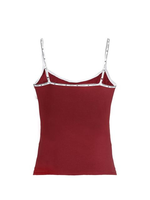 Red camisole that has fashionable ultra soft, adjustable straps that rest comfortably on your shoulders and leaves no marks on your skin. The trendy logo straps makes a style statement of its own