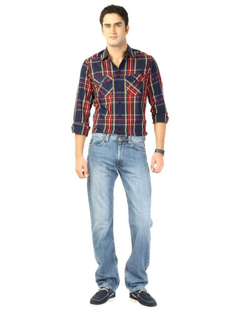 Look cool in these washed blue denim jeans from lee. The regular fit design is a classic and the cotton fabric keeps you comfortable all day. Team this pair with slim fit shirts or graphic tees and canvas shoes for a casual look.