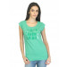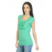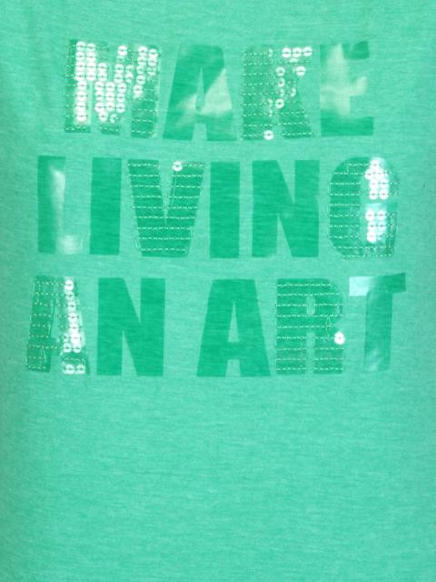Green round neck Top made of cotton polyester blend, has short raglin sleeves and sequin and graphic print on the front