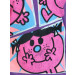 Lilac T-shirt made of 100% cotton, has a round neck, short sleeves and rubber with flock print on the front
