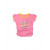 Pink round neck t-shirt, has short sleeves and embroidery on the right chest