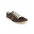 Brown chemise, has a V neckline, adjustable spaghetti straps, gathers below the bust, printed tape detail around the neckline which extends to form a tie detail in the centre and printed frills at the hemline