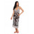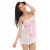 White nightdress with purple print, has a halter neck tie up detail, a round neck and an elasticated back
