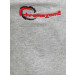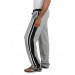Grey lounge pants, pockets at side, elasticated waist with drawstring, black and white paneling with branding at thigh
