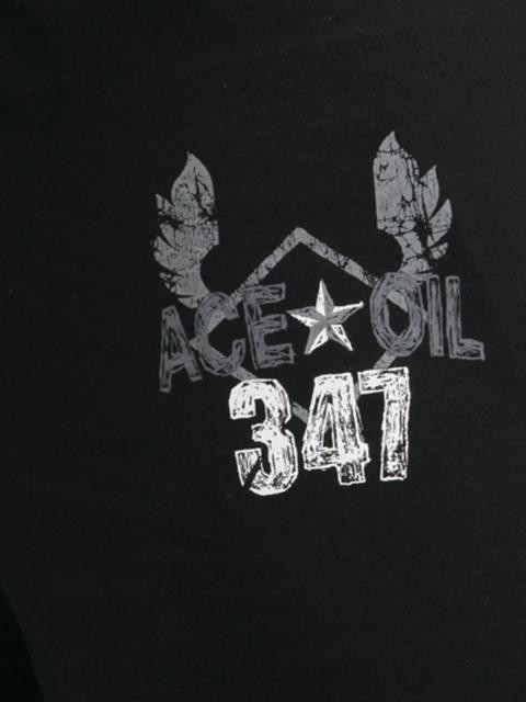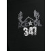 Black knitted shorts with grey and white panels on the sides and a printed design on the left