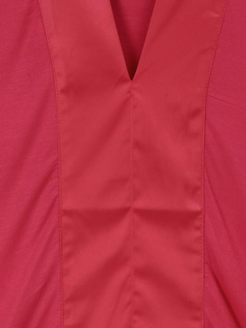 Pink nightdress top, V neck with satin band collar, sleeveless, curved hem with vent at side