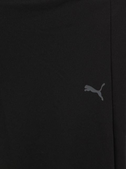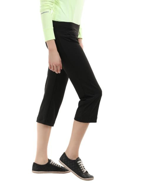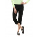 Black fitted capris, has an elasticated waist band and straight legs with brand logo on one leg