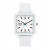 White pyjama top with round neck, printed piping, short puffed sleeves with short ruffled hem, vents at the hem and strawberry flock print on chest.
