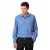 Light blue pyjama top has a round neck with racer back, royal blue piping on sleeves, vents at the hem, elasticated sides and cross-stitch embroidery on chest