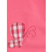 Pink long top with a round neck and a split neckline, checkered lining, short sleeves and vents at the sides