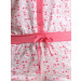 Bright coral and white all-in-one playsuit with a poodle print, has a round neck, full buttoned placket, short puffed sleeveds, elasticated waist with drawstrings, shorts attached and pockets on the sides