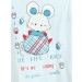 Blue knee- length sleeveless nightdress with thin shoulder straps, V-neck with paneling and metallic and crystal embellishments at the yoke and print on the front
