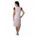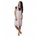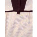 White knee-length nighty with orange and brown prints, has a round neck, chest button placket, short puff sleeves, brown paneling and side slits