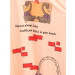 Peach colour knee length nightdress with round neck, short sleeves with ruffles on the cuffs, tie-up detail on the front and print on the front