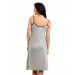 Grey knee-length night dress with blue trims, has tie-ups at the shoulder, ruffles at the front neckline and print on the front