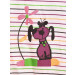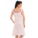Light lavender knee-length night dress with purple trims, has tie-ups at the shoulder and front, has printed stripes on the front